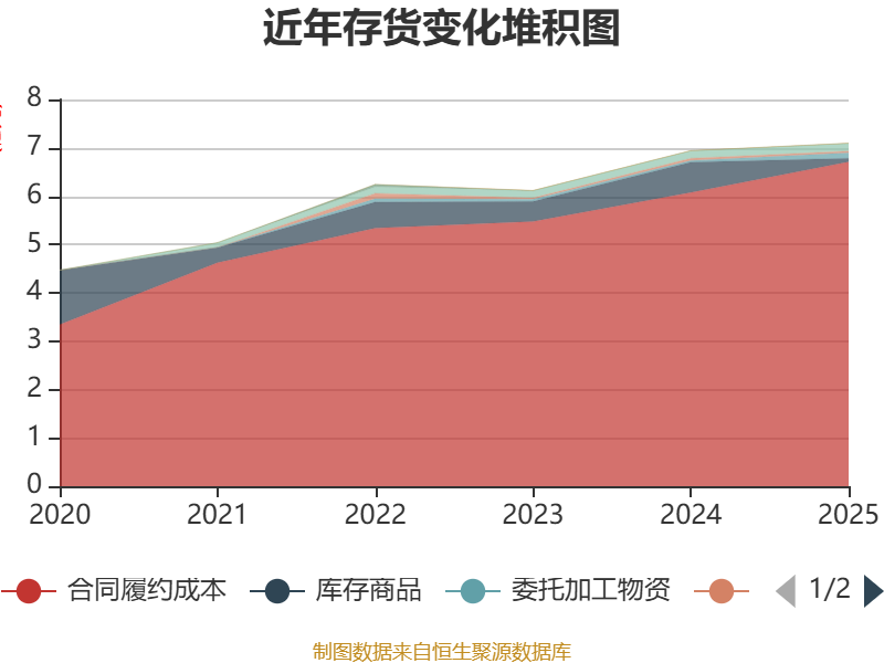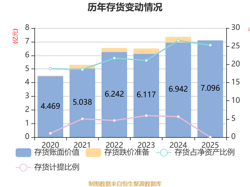 从存货变动来看,截至2025年末,公司存货账面价值为7.1亿元,占净资产的25.29%,较上年末增加1537.19万元。公司本期没有计提存货跌价准备。