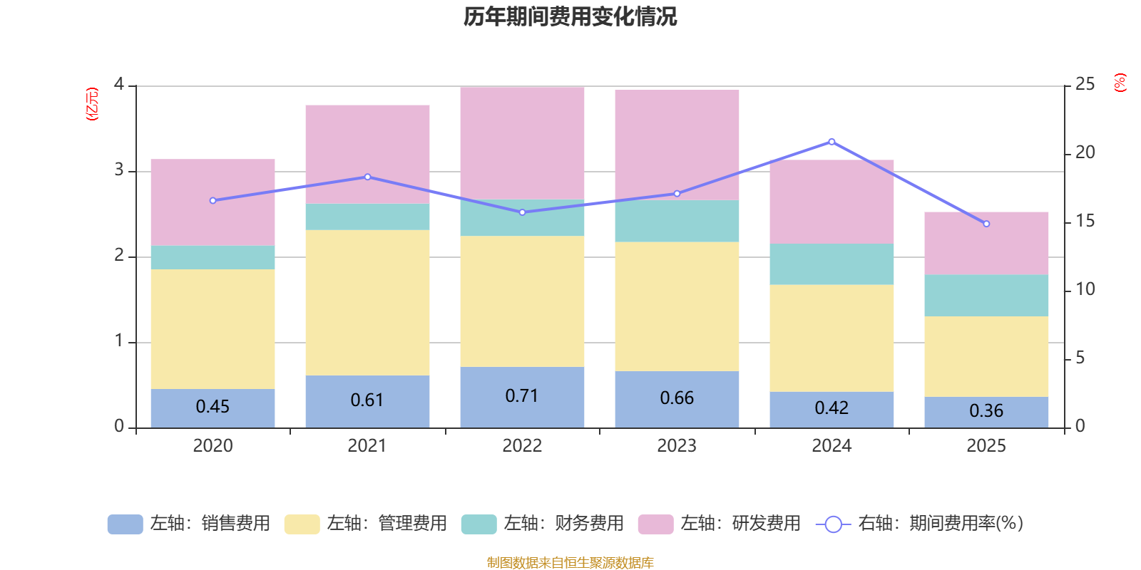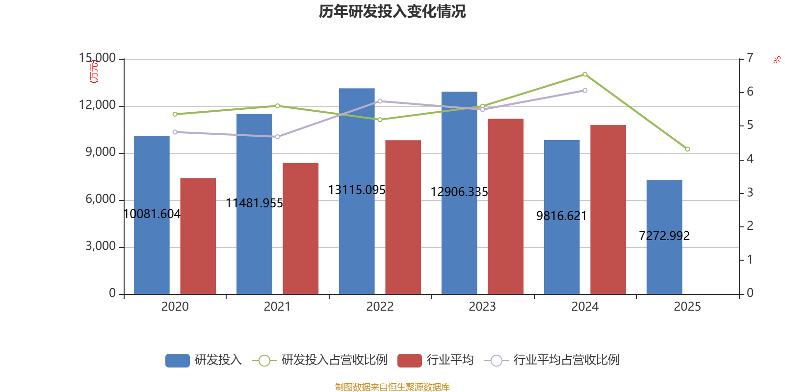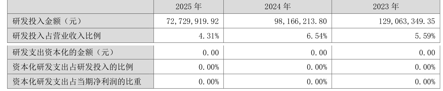 2025年全年,公司研发投入金额为7272.99万元,同比下降25.91%;研发投入占营业收入比例为4.31%,相比上年同期下降2.23个百分点。此外,公司全年研发投入资本化率为0%。