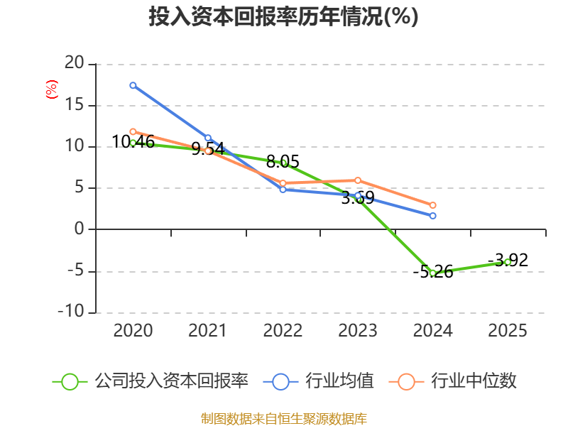 数据显示,2025年公司加权平均净资产收益率为-6.44%,较上年同期上升1.5个百分点。公司2025年投入资本回报率为-3.92%,较上年同期上升1.34个百分点。
